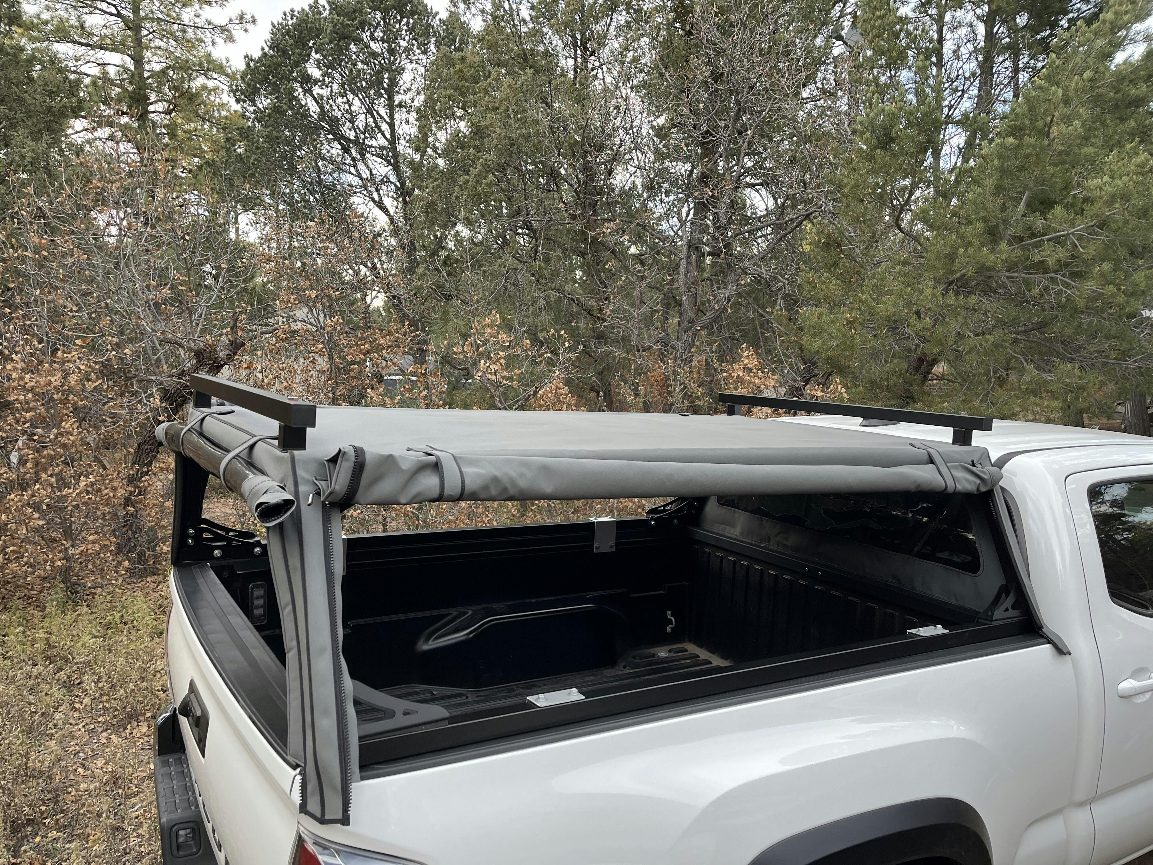 The WildTop soft canvas truck cap functions like no other. Our patented design protects your load and allows for complete access. Our designers took up the challenge to create a truck cap that opened wider for easier access and offers an integrated roof rack system that will carry a roof top tent with ease, simply the best way to transform your truck into the ultimate overlander. The result means you can get to whatever you need in your truck bed and do it easily and quickly. Slide to adjust cover