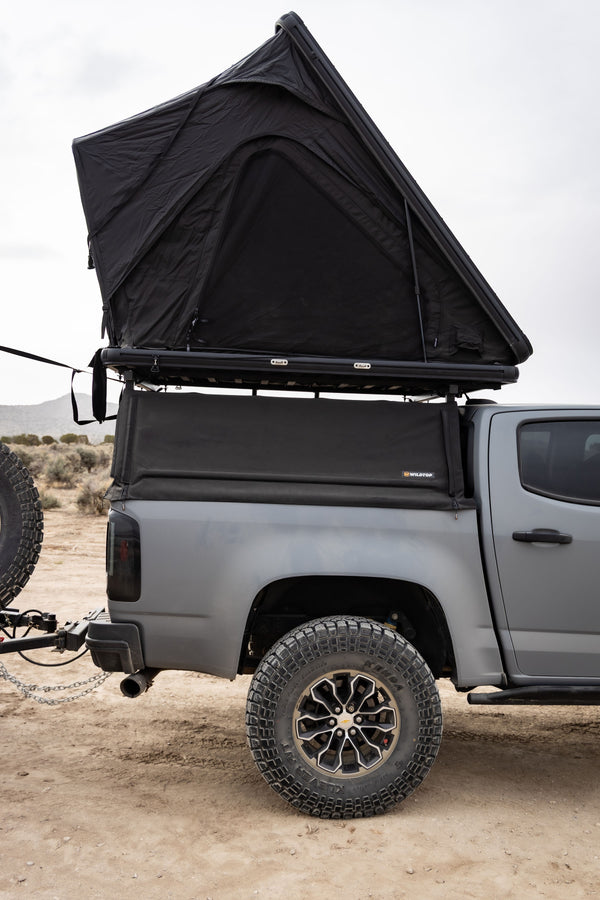 The WildTop Truck Cap is the world's first soft truck topper with an integrated, load-rated roof rack system, engineered in Australia to deliver 100% weather protection and up to 1,500 lbs of static weight capacity. Available in three editions—Scout, Nomad, and Beast—this soft truck topper will fit your Ram 1500 2019-Current New Body Style DT 6'4" Bed (76.3 in)perfectly and offers unimpeded 3-side access, a simple no-drill installation, and the versatility to haul ladders, trade gear, and on compatible editions, even the heaviest rooftop tents.